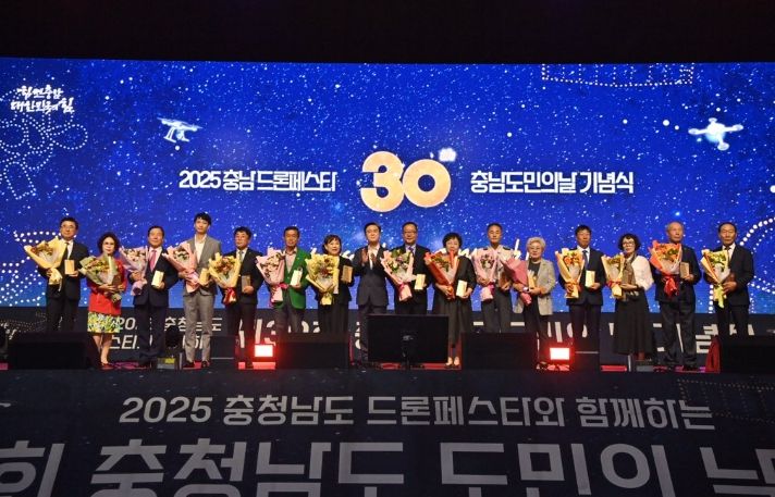 이번 기념식은‘충남에서 빛나는 도민의 힘’을 주제로 2,000여 명이 참석한 가운데 진행됐으며, '2025 충청남도 드론페스타'와 연계하여 드론 라이트 쇼 등 볼거리를 더했다.