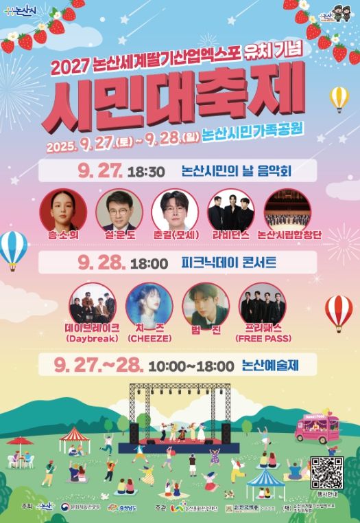 내고향뉴스 이경희 기자 | 논산시는 오는 27일부터 28일까지 논산시민가족공원에서 ‘2027 세계딸기산업엑스포 유치기념 시민대축제’를 개최한다.