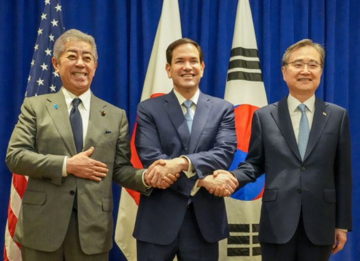 내고향뉴스 임정빈 기자 | 제80차 유엔총회 고위급 회기 참석 차 뉴욕을 방문중인 조현 장관은 마르코 루비오(Marco Rubio) 미국 국무장관 및 이와야 다케시(岩屋毅) 일본 외무대신과 9월 22일 한미일 외교장관회의를 갖고, 한반도 및 지역 현안과 한미일 3국 간 경제안보 협력 증진 방안 등에 대해 논의하고 공동성명을 채택했다.