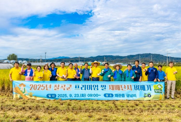 내고향뉴스 라정운 기자 | 칠곡군은 23일 왜관읍 금남리에서 ‘칠곡군 프리미엄 쌀 재배단지 벼베기 행사’를 개최했다.
