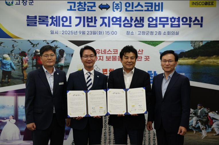 내고향뉴스 정미경 기자 | 고창군은 지역사랑상품권 ‘고향사랑페이’의 기술 고도화를 위해 23일 군청 회의실에서 ㈜인스코비와 업무협약을 체결했다.