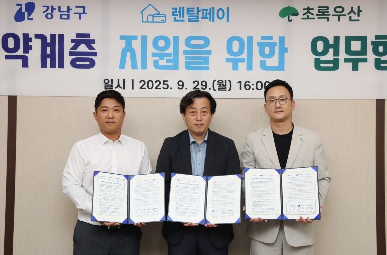 내고향뉴스 이경희 기자 | 꿈이 모이는 도시, 미래를 그리는 강남구가 9월 29일 렌탈페이, 초록우산과 함께 주거취약계층 지원을 위한 3자간 업무협약(MOU)을 체결했다.