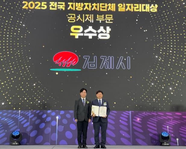 내고향뉴스 정미경 기자 | 김제시는 30일 청주 오스코에서 열린 '2025년 전국 지방자치단체 일자리대상'시상식에서 공시제 부문 우수상을 수상하며 고용노동부 장관 표창과 함께 인센티브 사업비 5백만원을 확보했다고 밝혔다.