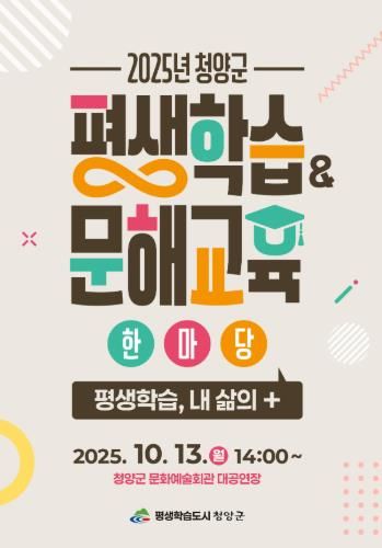 내고향뉴스 이경희 기자 | 청양군은 오는 13일 오후 2시 청양군 문화예술회관 대공연장에서 군민 모두가 함께 배우고 즐기는 축제, ‘2025 평생학습 & 문해교육 한마당’을 개최한다.