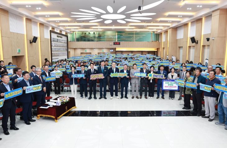 이번 결의대회는 인구 감소와 고령화 등으로 침체된 농촌 지역에 활력을 불어넣기 위해 정부가 추진 중인 ‘농어촌 기본소득 시범사업’의 대상지로 화순군이 선정될 수 있도록 결의를 다지는 자리였다.