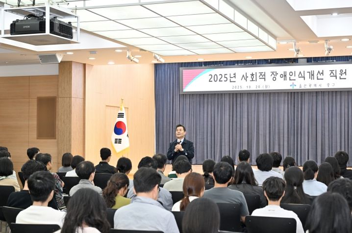 내고향뉴스 김익성 기자 | 울산 중구가 10월 20일 오후 3시 중구청 대회의실에서 직원들을 대상으로 2025년 사회적 장애인식개선 교육을 실시했다.