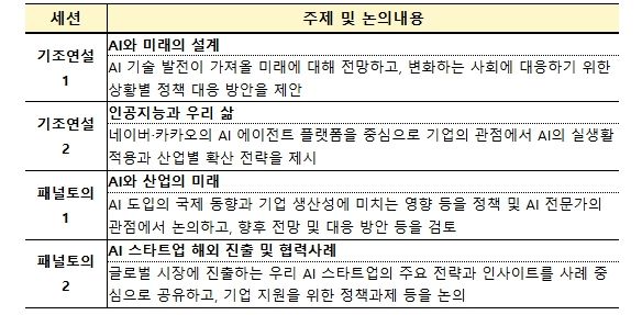 이어진 토론 세션에서는 국내외 전문가들이 패널로 참여해 ➊AI로 인한 산업 구조 전환과 정책 과제, ➋AI 스타트업의 글로벌 시장 진출 전략과 정책 과제에 대한 민관 전문가의 경험을 공유하고 대응방향을 논의했다.