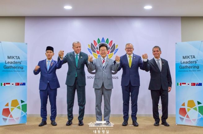 내고향뉴스 김익성 기자 | 주요 20개국(G20) 정상회의 참석을 위해 남아프리카공화국을 방문한 이재명 대통령은22일(현지시간) 오후 우리나라, 멕시코, 인도네시아, 튀르키예, 호주 5개국으로 구성된 믹타(MIKTA) 회원국 정상들과 회동했다.