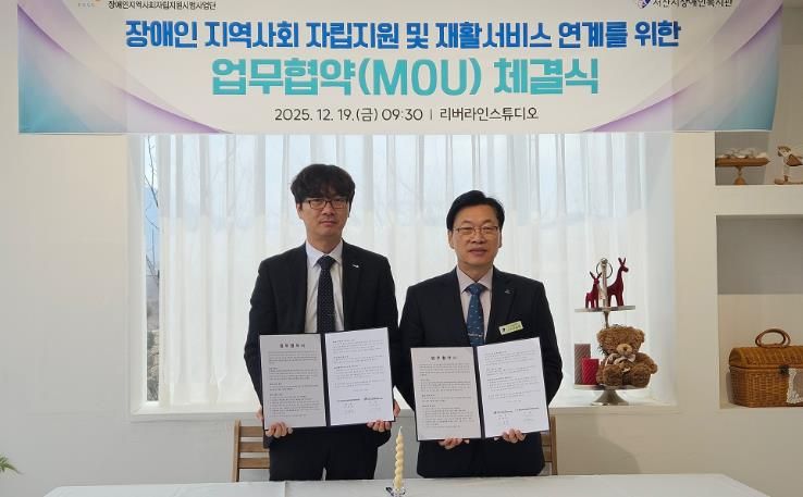 내고향뉴스 김익성 기자 | 서산시장애인지역사회자립지원시범사업단과 서산시장애인복지관은 2025년 12월 19일, 서산시에 거주하는 장애인의 안정적인 지역사회 정착과 복지 향상을 위해 업무협약(MOU)을 체결했다.
