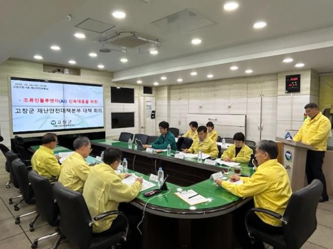내고향뉴스 윤환열 기자 | 고창군이 24일 김영식 부군수주재로 군청 재난안전상황실에서 행정안전부와 함께 재난안전대책본부 회의를 열고, 고병원성 조류인플루엔자(AI) 확산 방지를 위한 방역관리 상황을 점검했다.