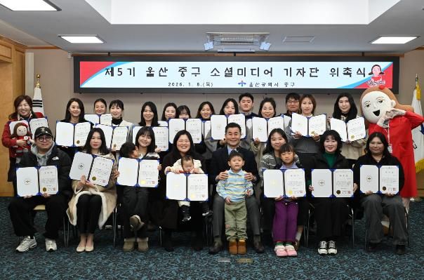내고향뉴스 장동환 기자 | 울산 중구가 제5기 중구 소셜미디어 기자단을 새롭게 구성하고 지난 1월 8일 오후 6시 30분 중구청 중회의실에서 위촉식을 열었다.
