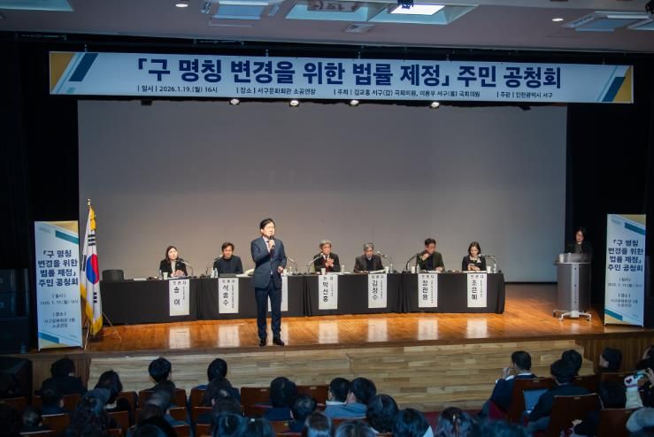 내고향뉴스 채승병 기자 | 인천 서구는 지난 19일 서구문화회관 소공연장에서 지역주민 약 200여 명이 참석한 가운데 ‘구 명칭 변경을 위한 법률 제정 주민 공청회’를 개최하고 주민 의견을 수렴했다.