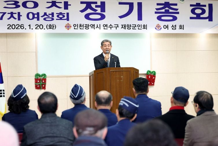 내고향뉴스 김익성 기자 | 인천광역시의회 정해권 의장(국·연수구1)은 20일 인천시 연수구 보훈회관에서 열린 ‘2026년 제30차 연수구 재향군인회 및 제27차 연수구 재향군인회 여성회 정기총회’에 참석해 회원들을 격려했다.