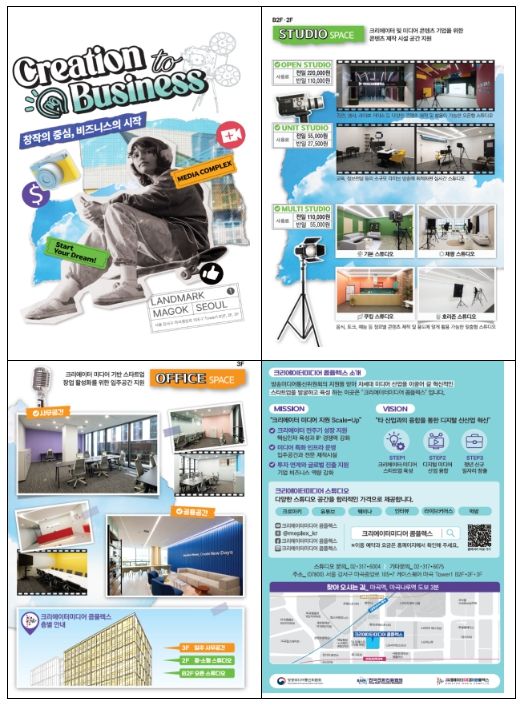 2021년 서울역에 개소한 ‘크리에이터미디어 콤플렉스’는 청년 기업들이 안정적으로 성장할 수 있도록 콘텐츠 제작 및 실시간 방송이 가능한 특화 제작 스튜디오와 독립 사무실 등을 제공하는 복합 공간으로, 미디어 새싹기업(스타트업)의 투자 유치와 사업 확장을 위한 전문 상담(컨설팅)을 진행하고 있다.