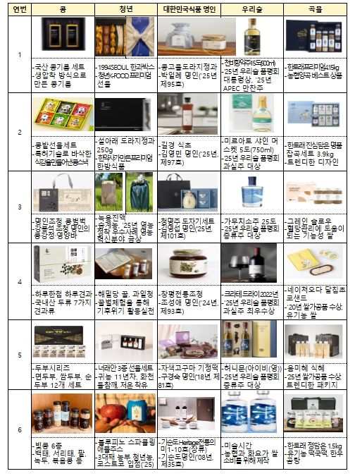이번 선물세트는 ‘프리미엄, 신뢰, 상생, 도전’을 주제로 엄선됐으며, 총 5개 카테고리, 30개 제품으로 구성되어 소비자의 선택 폭을 넓혔다.
