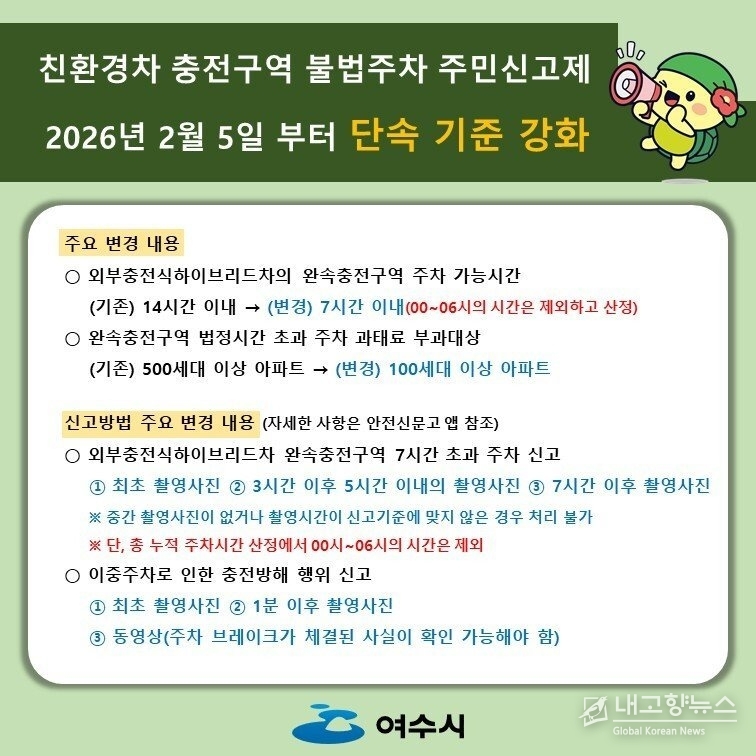 완속충전구역에서 PHEV의 장시간 주차 신고 시 촬영 간격과 시간 기준이 단축됩니다.