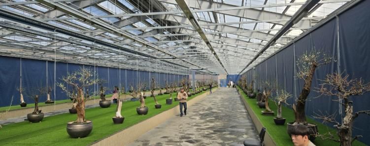 전시 작품은 직립형과 수양형 등 다양한 수형으로 구성되며, 흰색·연분홍색·진분홍색 등 다채로운 색감의 매화를 한자리에서 감상할 수 있다.