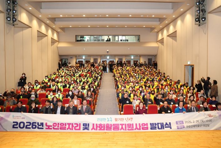 내고향뉴스 김익성 기자 | 김해시는 26일 국립김해박물관 대강당에서 노인일자리 참여자 등 230여 명이 참석한 가운데 ‘2026년 노인일자리사업 발대식’을 개최했다.