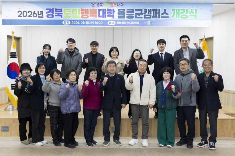 내고향뉴스 장우석 기자 | 울릉군은 18일 오후 2시 울릉군청 4층 회의실에서 남한권 울릉군수(학장)를 비롯해 수강생과 관계자 등 20여 명이 참석한 가운데 ‘2026년 경북도민행복대학 울릉군캠퍼스 개강식’을 개최했다.