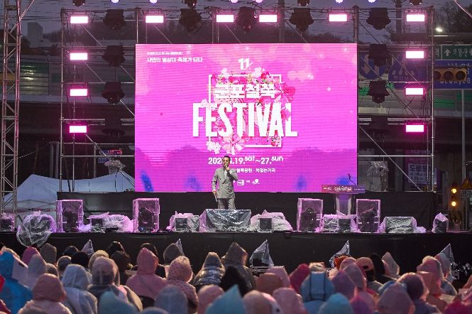 암전과 동시에 시작되는 카운트다운은 관객의 시선을 하나로 모으며, 이어지는 조명쇼와 영상이 철쭉이 피어나는 계절의 흐름을 생생하게 펼쳐낸다. 화려한 조명과 공간을 가득 채운 꽃잎, 관객의 움직임이 어우러지며 축제장은 무대와 객석의 경계가 허물어지고 모두가 함께 만드는 축제의 순간을 완성한다.