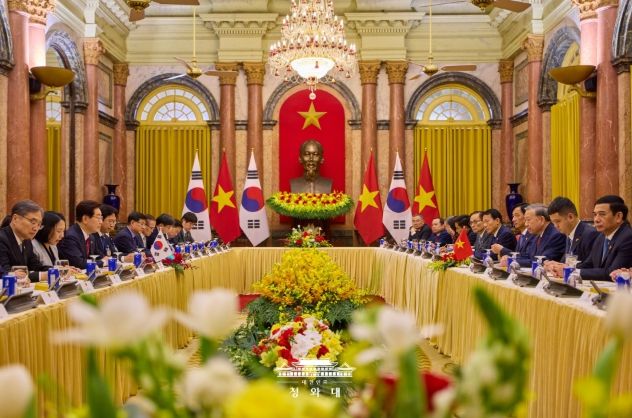 내고향뉴스 김익성 기자 | 베트남을 국빈 방문 중인 이재명 대통령은 22일(현지시간) 오후 베트남 국가주석궁에서 또 럼 당서기장 겸 국가주석과 정상회담을 갖고, 양국 간 포괄적 전략 동반자 관계 발전 방안과 지역·국제 정세 등에 대해 심도 있게 논의했다고 이규연 청와대 홍보소통수석이 서면 브리핑했다.