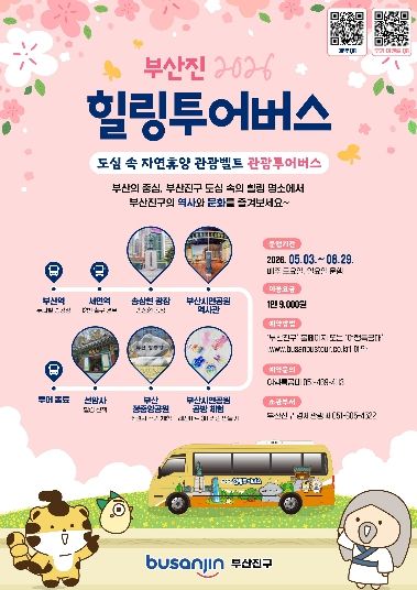 내고향뉴스 김명신 기자 | 부산진구는 도심 속 자연휴양 관광벨트 사업의 일환으로 부산진구의 주요 관광지와 자연휴양 자원을 연계한 ‘부산진 힐링투어버스’를 5월부터 9월 말까지 운영한다고 밝혔다.