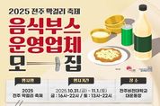 내고향뉴스 고광만 기자 | 맛의 도시 전주시가 ‘전주페스타 2025’의 일환으로 개최되는 ‘전주막걸리축제’를 함께 준비할 음식부스 참여업체를 모집한다. 시는 오는 10월 31일과 11월 1일 이틀간 전주비전대학교 대운동장에서 개최되는 ‘2025 전주막걸리축제’에서 음식부스를 운영할 참여업체를 공개 모집한다고 15일 밝혔다. 모집 대상은 막걸리 안주 판매 업소와 전주만의 다양한 음식 판매 업소 등 총 25개 업체다. 참여를 희망하는 업체는 신청서를 작성해 15일부터 오는 19일까지 전자우편으로 접수하면 된다. 기타 자세한 사항은 전주시 누리집 새소식란에서 확인할 수 있다. 이와 관련 전주막걸리축제는 전주시 대표축제인 ‘전주 페스타 2025’의 대미를 장식하는 행사로, 전주와 완주지역의 내로라하는 막걸리 업소들이 참여해 다양한 막걸리를 홍보·판매하고, MZ세대를 겨냥한 이색 주막 콘텐츠도 함께 선보이는 방식으로 운영될 예정이다. 시는 이번 축제를 통해 전주막걸리축제를 전통주와 음식을 주제로 한 전주의 새로운 핵심 축제로 발전시켜 나간다는 구상이다. 또한 시는 침체된 전주지역 막걸리 골목 등