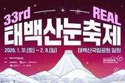 내고향뉴스 김명신 기자 | (재)태백시문화재단은 제33회 태백산 눈축제의 공식 포스터를 공개하고 본격적인 홍보에 나섰다고 밝혔다. 제33회 태백산 눈축제는 오는 2026년 1월 31일부터 2월 8일까지 태백산국립공원 일원에서 열릴 예정으로, 이번 축제는 ‘2026 RE⧗AL 태백산 눈축제’를 슬로건으로 시민과 관광객이 함께 참여하는 체류형 겨울축제로 운영된다. 공개된 공식 포스터는 ‘33rd REAL 태백산 눈축제’를 메인 타이틀로, 이번 축제의 주제인 ‘REAL’을 직관적으로 배치해 축제의 방향성과 정체성을 명확히 전달한다. ‘REAL’은 △항상 기억에 남는 축제(REMEMBER ALWAYS) △시민과 함께 소통하는 축제(REPLY ALWAYS) △휴식이 공존하는 축제(RELAX ALWAYS)를 의미한다. 포스터는 와인 컬러 톤을 바탕으로 한 겨울 산세와 조명 연출을 통해 눈축제 특유의 따뜻하고 안정적인 분위기를 표현했으며, 천제단과 태백시 마스코트 ‘태붐이’, 겨울 체험 장면 등을 배치해 태백만의 지역성과 가족 친화적 이미지를 함께 담아냈다. 문화재단은 축제의 인지도와 친근감을 높이기 위해 올해
