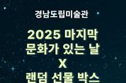 내고향뉴스 김명신 기자 | 경남도립미술관은 12월 31일 ‘문화가 있는 날’을 맞이해 연말을 함께 즐길 수 있는 특별 이벤트를 마련한다고 밝혔다. 이날 미술관은 전시실을 무료 개방하며, 관람 시간 또한 오후 8시까지 연장 운영된다. 오후 6시부터는 미술관을 찾은 관람객 중 선착순 30명에게 참여 기회가 주어지는 ‘행운권 추첨 이벤트’가 진행되며, 참여자에게는 랜덤 선물 박스 등 다양한 경품이 증정된다. 이번 행사는 ‘문화가 있는 날’을 통해 관람객이 미술관을 보다 가깝게 느끼고, 한 해를 예술과 함께 마무리할 수 있도록 기획됐다. 미술관 관계자는 “2025년을 함께 해준 지역민들에게 감사의 마음을 전하며, 작은 선물과 예술의 경험이 따뜻한 연말 추억이 되길 바란다”라고 전했다. 한편, 이번 야간 개장에서는 현재 진행 중인 환경을 주제로 한 체험형 전시《테라폴리스를 찾아서》와 함께《현대옻칠예술: 겹겹의 시간》도 관람가능하다.