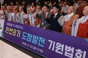 내고향뉴스 박성환 기자 | 충청북도와 충북불교총연합회는 11월 21일 김영환 도지사를 비롯한 시·군 부단체장과 충북불교총연합회(회장 정덕 스님), 불교계 인사 등 160여 명이 참석한 가운데 도민의 안녕과 도정 발전을 기원하는‘2025년 민선8기 도정발전 기원법회’를 성대히 개최했다. 이날 행사는 ▲도정발전 기원법회 ▲민선 8기 충북의 일곱 개의 별을 중심으로 한 도정현안 특강 ▲오찬 간담회 순으로 진행됐으며, 참석자들은 화합과 소통 속에서 도민 삶의 행복과 지역 발전을 위해 하나 된 마음으로 기도했다. 도·불협의회는 도내 스님들과 불자들에게 도정 주요 현안에 대한 이해를 높이고, 종교계와 도정 간 소통과 협력을 강화하기 위해 1999년부터 매년 개최해 왔다. 김영환 도지사는 “충북의 발전을 위해 함께 기도해 주시고 변함없는 성원을 보내주시는 모든 분들게 깊이 감사드린다”며 “적극행정을 통한 충북의 과감한 변화와 혁신이 대한민국 전역에 개혁의 훈풍을 일으켜 충북이 전 분야에서 대한민국의 중심에 설 수 있도록 여러 대덕스님들과 불자 여러분의 지속적인 관심과 응원을 부탁드린다”고 말했다.