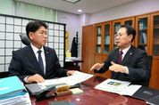 내고향뉴스 박성환 기자 | 충북 괴산군은 13일, 송인헌 군수가 국회를 방문해 지역 현안사업의 정부 예산 반영을 위해 국회의원들과 면담하고 예산안 심의에 적극 협조를 요청했다고 밝혔다. 송 군수는 이날 한병도 예결위원장을 비롯하여 이재관·박형수 국회의원을 만나 괴산의 미래 성장 기반 마련과 군민 삶의 질 향상을 위한 핵심 사업 6건을 설명하며, 국비 차원의 예산 증액 협조를 적극 요청했다. 군이 건의한 주요 사업은 △괴산육군학생군사학교 체력단련장 조성사업(총사업비 300억 원), △불정목도지구 도시침수예방사업(266.4억 원), △괴산군 자원순환센터 매립시설 3단계 1단 증설사업(25.3억 원), △주진N2지구 급경사지 붕괴위험지역 정비사업(6억 원) △광진지구 농촌용수개발사업(113억 원) △산촌활성화지원센터 관리(50억 원) 등이다. 해당 사업들은 기존 시설의 노후화와 지역 환경 변화에 대응해 군민의 삶의 터전을 안정적으로 마련하는 핵심 사업이다. 특히 괴산육군학생군사학교 체력단련장 조성사업은 학군교 유휴부지를 활용해 군 장병 복지 증진과 함께 지역 체육 인프라를 확충하고, 경제 활성화에도 기여