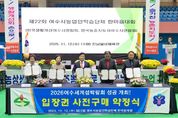 내고향뉴스 박성환 기자 | 여수시는 지난 12일 진남실내체육관에서 열린 ‘제22회 여수시 농업인학습단체 한마음대회’가 농업인 등 700여 명이 참석한 가운데 성황리에 마무리됐다고 밝혔다. 한국생활개선여수시연합회와 한국농촌지도자여수시연합회가 공동 주관한 이번 행사는 ‘AI 과학영농 시대, 여수농업이 선도한다’를 주제로 기후변화와 고령화에 대응하고 AI 기술을 활용한 지속 가능한 농업 실현의 뜻이 담겼다. 이날 행사에는 한국농촌지도자전라남도연합회와 한국생활개선전라남도연합회가 함께 참여해 총 4개 단체가 2,500만 원 규모의 2026여수세계섬박람회 입장권 구매 약정식을 진행하며 박람회 성공개최 염원에 뜻을 모았다. 또한 송미령 농림축산식품부 장관과 전라남도 생활개선회원들의 ‘섬박람회 성공개최 염원 엽서’가 전시돼 눈길을 끌었으며 참석자들이 직접 작성한 엽서 현장 평가 이벤트와 ‘섬박람회 OX 퀴즈’도 진행돼 축제 분위기 속에서 박람회 붐 조성에 기여하는 시간이 됐다. 행사장에는 회원들이 직접 재배한 농산물과 계절별 음식 작품, (사)아름다운 여수시귀농귀촌협회에서 생산한 우수농산물 전시·홍보 공간도 마련