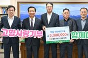 내고향뉴스 박성환 기자 | 거창군은 지난 10일 농협중앙회 거창향우회가 고향사랑기부금 500만 원을 기부했다고 전했다. 이날 기부식에는 이종삼 농협중앙회 울산본부장, 최도영 김해농수산물종합유통센터 지사장, 이희열 농협중앙회 거창군지부장, 신화범 북부농협조합장, 김종두 수승대농협조합장 등이 참석해 고향에 대한 깊은 애정을 담아 기부금을 전달했다. 농협중앙회 거창향우회는 거창 출신으로 농협중앙회와 농협은행에 재직하고 있는 향우들의 모임으로 서울과 경남 지역에 재직하고 있는 30여 명의 회원으로 구성되어 있으며, 고향사랑기부제 시행 첫해 500만 원 기부에 이어 올해도 고향의 발전을 응원하며 기부에 동참했다. 이종삼 농협중앙회 울산본부장은 “고향을 살리고 지역의 농가에도 보탬이 되는 고향사랑기부제에 동참하게 되어 매우 뜻깊게 생각한다”며 “앞으로도 고향의 발전을 위해 지속해서 관심을 가지고 다양한 방식으로 고향사랑을 실천하겠다”고 말했다. 구인모 거창군수는 “고향에 대한 애틋한 마음을 기부로 전해주신 농협중앙회 향우님들께 진심으로 감사드린다”며 “소중한 뜻이 지역발전에 큰 힘이 될 것으로 기대한다”고