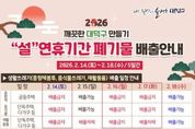 내고향뉴스 윤환열 기자 | 대전 대덕구는 설 연휴 기간 구민과 귀성객이 쾌적한 명절을 보낼 수 있도록 ‘설 연휴 쓰레기 관리 대책’을 추진한다. 구는 오는 13일까지 동별 설맞이 대청소를 실시하고, 장기 적치된 생활폐기물을 수거해 쾌적한 생활환경을 조성할 계획이다. 또한 연휴 전 불법투기 단속반을 투입해 다중 이용 집합 장소와 상습 투기지역을 집중적으로 점검하고, 불법투기 예방 홍보를 병행할 예정이다. 연휴 기간인 14~18일에는 상황실과 특별 청소기동반을 운영해 쓰레기 관련 민원에 적극 대응할 예정이다. 다만, 14일, 16일, 17일에는 일반 쓰레기를 수거하지 않으며, 15~17일에는 대형폐기물 수거가 중단된다. 이에 따라 해당 기간에는 쓰레기 배출이 이뤄지지 않도록 구민들의 협조가 필요하다. 오는 19일부터는 평일과 동일하게 쓰레기 배출이 가능하다. 한편, 구는 설 연휴 생활 쓰레기 수거 일정을 대덕구 누리집, 카드뉴스, 네이버 블로그․밴드 등을 활용해 사전 홍보하며 각 가정에서 쓰레기 배출로 인한 불편이 발생하지 않도록 안내에 나서고 있다. 대덕구 관계자