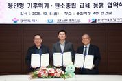 내고향뉴스 윤환열 기자 | 용인특례시는 8일 시청 접견실에서 강남대학교, 용인예술과학대학교와 ‘용인형 기후위기·탄소중립 교육 동행 협약’을 체결했다. 이날 협약식은 기후위기에 공동으로 대응하고, 지속가능한 지역사회 발전과 미래 세대 양성을 위해 마련됐다. 협약의 주요 내용은 ▲탄소중립‧기후 위기 대응 교육프로그램 공동 개발‧운영 ▲교육봉사‧멘토링 등 교원‧전문가‧학생 간 교류와 연계 활동 지원 ▲지역사회 대상 탄소중립 홍보‧캠페인‧체험 교육 공동 추진 ▲교육시설‧인프라 상호 활용 등이다. 협약에 따라 시와 두 대학은 탄소중립 사회 실현을 위한 교육 모델을 구축한다는 방침이다. 각 대학의 유아교육과 인력과 연계해 교육봉사 기회를 확대하고, 신규 프로그램을 공동 개발해 용인지역 학생들을 탄소중립 실천 의지를 가진 인재로 육성하고, 시민의 환경 감수성을 높이는 데도 이바지하겠다는 계획이다. 이에 따라 오는 12일 용인예술과학대 유아교육과 연극동아리가 기후변화체험교육센터에서 아동 30명을 대상으로 관련 연극을 진행한다. 이상일 시장은 “기후 위기는 글로벌 차원의 가장 중대한 문제인
