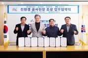 내고향뉴스 윤환열 기자 | 대전 유성구는 1일 유성구청 중회의실에서 대형 건축 공사장 시공사와 ‘친환경 공사 현장 조성 업무 협약’을 체결했다. 이번 협약은 고농도 미세먼지 발생 빈도가 높은 겨울철을 앞두고 공사장의 친환경 문화를 확산하고 ESG 경영을 실천하기 위해 마련됐으며, 현대건설(주)·(주)대우건설·㈜서해종합건설 등이 참여했다. 협약에 따라 공사장은 비산먼지와 소음 발생을 예방하기 위한 관련 규정을 준수하고, 폭염·폭설 등 재난 상황 발생 시 도로 살수·제설 작업을 지원한다. 또한, 친환경 건축 자재를 활용하고 사무실에서는 다회용기 사용을 실천하며, 유성구는 협약 내용이 이행될 수 있도록 행정·재정적 지원을 제공할 계획이다. 정용래 유성구청장은 “이번 협약을 통해 공사장 주변 환경 개선에 큰 힘이 될 것으로 기대한다”라며 “앞으로도 친환경 공사 문화 정착을 위해 지속적으로 협력하겠다”라고 말했다.