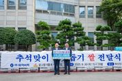 내고향뉴스 이경희 기자 | 부산 부산진구는 ㈜와이씨텍·맑고향기롭게 부산모임에서 9월 30일 부산진구청을 방문하여 추석을 맞이하여 어려운 이웃들에게 전달해 달라며 백미 10kg 2,500포(환가액 1억 원)를 기탁했다고 전했다. 이날 전달식에 참석한 박수관 회장은 “추석에 어려운 이웃들이 소외감을 느끼지 않고 온기와 희망을 가질 수 있도록 이번에 전달되는 쌀이 우리 이웃들에게 도움이 되길 바란다”며 “앞으로도 어려운 이웃을 세심히 살피고, 힘 닿는 데까지 기부와 봉사를 지속적으로 실천하겠다”라고 말했다. 김영욱 구청장은 “매년 명절마다 잊지 않고 어려운 이웃들을 위해 꾸준히 나눔을 실천해 주셔서 감사드린다”라며 “이번에 기부해 주신 쌀 2,500포는 각 동 주민센터 및 관내 사회복지시설을 통해 어려운 이웃들에게 잘 전달하겠다”라고 화답했다.