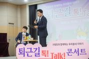 내고향뉴스 이경희 기자 | 인천 서구는 지난 30일 저녁 서구청 대회의실에서 검암경서동, 연희동 주민 약 160여 명과 함께 ‘퇴근길 톡! Talk! 콘서트’를 열고 서구의 미래 비전을 공유했다. ‘퇴근길 톡! Talk! 콘서트’는 평소 구정 참여가 어려운 직장인들을 위해 야간 시간대에 진행되는 주민 소통 행사로, 강범석 구청장은 2023년 청라 권역, 2024년 검단 권역, 2025년 8월 가정‧신현원창‧석남‧가좌 권역 그리고 9월 검암경서‧연희 권역까지 모든 권역 구민과 직접 만나는 소통의 여정을 완성했다. 이번 검암경서‧연희 권역 행사에서 강범석 구청장은 교통, 경제, 문화 등 구정 전반과 검암역세권 공공주택지구 개발, 공촌동 신개념 실내체육관 건립, 2026년 행정체제개편 계획 등 주요 사업을 쉽게 풀어 설명하며 주민들의 관심을 집중시켰다. 이어진 구민과의 대화 시간에는 “문화활동 지원에도 힘써달라”, “육아에 대한 아낌없는 지원을 바란다” 등 여러 의견이 이어졌다. 구청장은 주민의 목소리에 귀 기울이고 현황을 답변하며 구민들의 궁금증을 해소했다. 한편 이번 행사에는 유관기관인 인천도시공