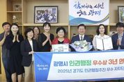 내고향뉴스 이경희 기자 | 광명시가 경기도가 선정하는 인권 행정추진 우수 기관으로 3년 연속 선정되며 인권 선도 도시로 확고히 자리매김했다. 시는 지난 9월 30일 경기도청 다산홀에서 열린 ‘2025년 경기인권포럼’에서 경기도 인권 행정추진 우수 자치단체 경기도지사 표창을 받았다. 경기도는 31개 시군을 대상으로 인권행정 제도와 정책 추진 성과를 종합 평가해 5개 우수 자치단체를 선정했으며, 광명시는 평가 제도가 도입된 2023년부터 올해까지 매년 수상하는 성과를 거뒀다. 이번 수상은 ▲인권행정 제도 구축(인권조례제정, 인권위원회 구성 및 운영, 인권교육 실시 등), ▲인권정책 수립(인권기본계획 수립 및 연도별 시행계획 수립, 인권실태조사 및 인권영향평가, 인권문화행사 등) ▲지역사회 인권증진 활동 ▲시민 인권 보장과 존중 문화 확산 등 전반적 성과를 전문가들로부터 인정받은 결과다. 광명시는 2012년 지방자치단체 최초로 ‘광명시민인권센터’를 개소하고, ‘인권보장 및 증진 5개년 기본계획’ 수립하는 등 인권 친화적 행정의 기틀을 마련해 왔다. 특히 인권기본계획에 재개발·재건축이 많은 도