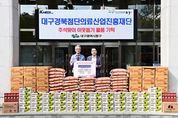 내고향뉴스 이경희 기자 | 대구경북첨단의료산업진흥재단은 지난 29일, 저소득 취약계층을 위해 10kg 백미 50포, 샤인머스켓 50박스, 라면 50박스, 간이소화기 50개를 동구청에 기탁했다. 이번 기탁은 재단 임직원들이 대구 동구의 동서시장을 방문해 명절 성수품과 생필품 등을 직접 구매한 후, 해당 물품을 동구청에 전달하는 방식으로 진행됐다. 기탁한 물품은 동구 내 취약계층과 복지 사각지대 이웃들에게 전달 될 예정이다. 박구선 이사장은 “작은 정성이지만 어려운 이웃들이 따뜻한 명절을 보내는 데 도움이 되기를 바란다”고 말했다. 윤석준 동구청장은 “추석을 맞아 이웃을 먼저 생각해주신 대구경북첨단의료산업진흥재단에 깊은 감사를 드린다”며 “기탁해주신 물품은 도움이 필요한 분들께 소중히 전달하겠다”고 했다.