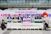 내고향뉴스 이경희 기자 | NH농협 성남시지부는 어려운 이웃에게 전달해 달라며 1억9000만원 상당의 쌀 5000포대(포대당 10㎏)를 9월 29일 성남시에 맡겼다. 시는 이날 오전 11시 시청광장에서 신상진 성남시장과 양흥식 농협 성남시지부장, 김효진 경기 사회복지공동모금회 사무처장 등이 참석한 가운데 ‘2025년 한가위 맞이 서로 사랑 나누기 쌀 전달식’을 했다. 받은 쌀은 성남지역 50개 동 기초생활보장 수급자와 저소득층에 1포씩 전달하기로 했다. NH농협 성남시지부는 2012년부터 추석 명절 때마다 저소득층을 위한 쌀을 성남시에 기탁해 오고 있다. 2023년부턴 쌀, 김치, 성금 등 다양한 형태로 나눔을 실천해 지역 사회에 온기를 전하고 있다.