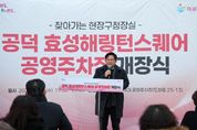 내고향뉴스 장동환 기자 | 박강수 마포구청장은 12월 3일 오후 5시, 공덕역 10번 출구 앞 광장에서 열린 ‘공덕 효성해링턴스퀘어 공영주차장 개장식’에 참석해 시설 개장을 축하했다. 이번에 문을 연 공덕 효성해링턴 스퀘어 공영주차장(도화동 25-13)은 총 21면 규모로 조성된 거주자우선주차장으로, 구는 공공기여를 통해 확보한 이 공간을 주민들에게 개방해 운영하기로 했다. 아파트와 상가, 오피스가 밀집한 도화동·공덕동 일대는 주차 수요에 비해 공간이 부족해 주민과 방문객 모두가 지속적인 불편을 겪어 왔다. 이번 공영주차장 운영을 통해 지역에서 꾸준히 제기돼 온 주차 불편이 상당 부분 해소될 것으로 기대되며, 생활권 내 주차 편의도 한층 개선될 전망이다. 행사는 식전 공연을 시작으로 개회 및 내빈소개, 경과보고에 이어 박강수 마포구청장의 기념사가 진행됐으며, 이어 테이프 커팅과 기념촬영 후 시설 라운딩이 이어졌다. 추운 날씨 속에서도 박강수 마포구청장을 비롯해 백남환 구의회 의장, 지역 주민 등 약 100여 명이 참석해 주차 공간 확충의 성과를 함께 축하했다. 박강수 마