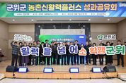 내고향뉴스 장우석 기자 | 군위군은 지난 17일, 군민회관에서 ‘농촌 신활력플러스사업 성과공유회’를 개최했다. 이번 행사는 군위군이 주관하고 신활력플러스사업 추진단이 주최했으며, 군위군수와 군위군의회 의장을 비롯해 33개 액션그룹, 사업 관계자 등 230여 명이 참석했다. 농촌신활력플러스사업은 지역 내 유·무형 자원과 민간조직을 연계해 특화산업을 육성하고 공동체 활성화를 도모하는 사업으로, 군위군은 2020년 사업 선정 이후 올해까지 사업을 시행했다. 이번 성과공유회는 사업 추진 성과를 종합적으로 정리하고 이를 대내외에 공유하기 위해 마련됐다. 행사장에는 성과물이 완성된 신활력플러스 액션그룹 32개 팀의 성과물이 전시됐으며, 사업을 통해 개발·생산된 다양한 제품들이 참석자들의 눈길을 끌었다. 개회식에 이어 6년간의 추진성과 보고와 함께 우수 액션그룹의 사례 발표가 이어졌다. 주요 사례로는 ▲새벽꽃차의 ‘군위 농산물을 활용한 꽃차·다식 개발’▲대율돌담마을의 ‘대율리 돌담을 이용한 문화콘텐츠 및 관광코스 개발’▲자희정맛이야기의 ‘군위대추를 활용한 수제빵 개발’ 등이 소개되어 사업의 실질적인 성과를 보여