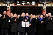내고향뉴스 장우석 기자 | 병오년 새해, 광주시와 전남도가 대한민국 민주화의 상징인 국립5·18민주묘지 오월영령 앞에서 광주‧전남 대부흥의 새 역사를 열어가기 위한 행정통합을 즉각 추진하기로 공동 선언했다. 강기정 광주광역시장과 김영록 전라남도지사는 2일 국립5‧18민주묘지에서 합동참배를 마친 뒤 민주의문 앞에서 광주‧전남을 하나로 묶는 ‘통합 지방정부 추진 공동선언문’을 발표했다. 광주와 전남은 인공지능(AI)과 에너지 대전환 시대를 맞아 남부권 반도체 벨트의 중심축이자 대한민국 미래 핵심 거점으로 도약하기 위해서는 광역 차원의 통합 추진이 필요하다는 데 공감대를 형성했다. 특히 이재명 정부가 시‧도 통합을 추진하는 지방자치단체에 대해 서울특별시에 준하는 지위와 조직 특례를 부여하고, 교부세 추가 배분과 공공기관 우선 이전 등 과감한 특전(인센티브)을 검토하고 있는 점을 고려할 때, 지금이야말로 광주‧전남이 행정통합을 추진할 최적기라는데 뜻을 모았다. 이에 따라 양 시‧도는 이번 공동선언을 통해 광주‧전남 행정통합을 더 이상 미루지 않고 즉각 추진하기로 합의했다. 양 시‧도는 시‧도
