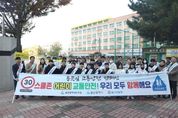 내고향뉴스 채필재 기자 | 울산광역시교육청은 6일 오전 8시에 울주군 울주명지초등학교 앞 어린이보호구역에서 ‘민·관·경이 함께하는 등굣길 교통안전 홍보 활동(캠페인)’을 펼쳤다. 이번 홍보 활동은 지역사회 협력으로 어린이보호구역 내 교통사고를 예방하고, 학생이 안심하고 학교에 다닐 수 있는 교통안전 문화를 확산하고자 마련됐다. 이날 행사에는 천창수 교육감을 비롯해 김종훈 울산광역시의회 의원, 울산시청, 울주군청, 울산울주경찰서, 강남교육지원청 관계자와 울주명지초등학교 학생과 교직원 등 50여 명이 함께했다. 참여자들은 어깨띠를 두르고 학교 정문에서 출발해 인근 횡단보도와 아파트 단지 주변을 돌며 교통안전 홍보 활동을 벌였다. 무인단속카메라, 신호기, 보도 안전울타리 등 보호구역 내 안전시설을 점검하고, 등굣길 학생들에게 교통안전 홍보 스티커가 부착된 구급함 밴드 세트와 교통안전 안내문을 나눠줬다. 현장에서는 학생들에게 ‘어린이 안전 수칙 일이삼사(일단 멈춤, 이쪽저쪽 살피기, 삼 초 동안 주의, 사고 예방)’ 등의 보행 수칙을 알리고, 시민들에게는 ‘안전속도 5030’, ‘어린이보호구역