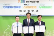 내고향뉴스 채필재 기자 | 인천광역시교육청은 9월 30일 ㈜월미하이랜드(대표 이덕성) 스토리지인천, 남동희망공간(대표 유병희)과 함께 ‘읽걷쓰’ 문화 확산을 위한 업무협약을 체결했다. 이번 협약으로 참여 기관들은 ▲‘읽걷쓰’ 연계 프로그램 운영 ▲지역사회 공헌 활동 협력으로 ‘읽걷쓰’ 활성화와 시민문화 정착을 위해 함께 나선다. 특히 관련 정보와 자원을 공유해 일상이 배움이 되는 교육환경을 조성하고 지역사회와 함께 성장하는 기반을 마련할 계획이다. 도성훈 교육감은 “인천교육은 ‘읽걷쓰’ 기반의 올바로․결대로․세계로 교육으로 학생성공시대를 활기차게 열어가고 있다”며 “이번 업무협약을 통해 기관 간의 상호 신뢰와 협력을 바탕으로 ‘읽걷쓰’ 실천 문화가 더욱 확산되기를 바란다”고 말했다.