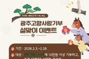 내고향뉴스 고광만 기자 | 2026 설 명절 맞이 광주 사랑 이벤트 2026년 설 명절을 맞아광주를 사랑하는 마음을 전하는 특별한 이벤트가 찾아왔습니다! 고향을 응원하는 따뜻한 기부에 참여하고,정성이 담긴 특별한 혜택도 함께 받아보세요 이벤트 기간2026. 2. 3. ~ 2. 28. 참여 대상광주광역시에 10만 원 이상 기부하고지정 답례품을 선택한 기부자 참여 혜택✨ 1만 원 상당 네이버페이 증정 ✨ 새해에는 기부로 마음을 나누고,풍성한 설 명절의 기쁨도 함께 누려보세요