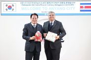내고향뉴스 김형구 기자 | 안양시는 최대호 시장이 지난 17일 오전 11시40분 안양시청 3층 접견실에서 호르헤 엔리케 발레리오 에르난데스 주한코스타리카 대사와 코스타리카 커피 산업을 총괄하는 공식 연구·관리 기관인 코스타리카 커피연구소(ICAFE) 대표단을 접견하고, 양국 지방정부 간 실질적 교류 확대 방안을 논의했다고 18일 밝혔다. 이번 접견은 지난 7월 말 최대호 안양시장이 전국사회연대경제지방정부협의회 소속 지자체장들과 함께 코스타리카를 방문해 스테판 브루너 제1부통령, 호르헤 발레리오 주한코스타리카 대사 등 정부 관계자와 만나 지속가능한 지역발전과 상생 경제 실현을 위한 정책을 논의한 데 따른 후속 교류 일정이다. 이날 최대호 시장은 환영 인사에서 “한국과 코스타리카의 수교 63주년이자 코스타리카 독립 204주년을 맞는 뜻깊은 해에 이렇게 다시 만나게 되어 더욱 의미가 깊다”며 “지리적으로 멀리 떨어져 있지만 상호 존중과 신뢰를 바탕으로 동반자적 협력을 이어가자”고 강조했다. 이에 주한코스타리카 대사는 안양시의 따뜻한 환대에 감사를 표하며 “코스타리카와 한국 양국 관계가 더욱 공고해지는 만큼, 안양시와