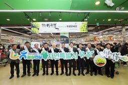 내고향뉴스 허민 기자 | ‘무주 반딧불 샤인머스캣 특별 판매전’이 오는 24일까지 서울 양재 하나로마트에서 열린다. 18일 시작된 이 행사는 고랭지 무주에서 재배·생산된 샤인머스캣의 맛과 품질을 서울과 수도권 소비자들에게 알려 소비를 촉진시키고 유통을 확대한다는 취지에서 마련된 것으로, 1.5kg 2만 박스(총 30톤) 판매를 목표로 하고 있다. 무주군은 이번 행사가 공급 과잉으로 가격 폭락의 어려움을 겪고 있는 농가들의 소득 안정을 뒷받침하는 버팀목이 될 것으로 기대하고 있다. 19일에는 황인홍 무주군수와 이동근 농협유통 대표이사, 최영섭 양재지사장을 비롯한 무주군과 농협유통 관계자 등 20여 명이 함께 현장에서 무주 반딧불 샤인머스캣의 우수성을 알리며 소비 촉진에 나서 의미를 더했다. 황인홍 무주군수는 “서울시민들에게 아무도 흉내 낼 수 없는 무주의 맛을 선보일 수 있게 된 것을 매우 뜻깊게 생각한다”라며 “이 자리가 반딧불이의 고장 무주를 알리고 반딧불 샤인머스켓과 소비자를 잇는 판로 확대의 발판이 되길 기대한다”라고 밝혔다. 이어 무주 반딧불 샤인머스캣의 지속적인 품질관리와 유통