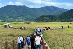 내고향뉴스 고광만 기자 | 추석 연휴 순천만습지를 찾은 방문객들이 가을 정취 속에서 갈대밭 산책을 즐기고 있다.